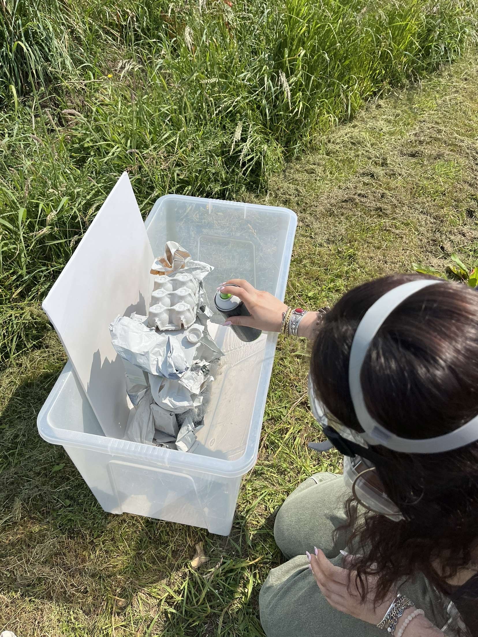 I began by litter picking along Bournemouth and Southbourne beach, collecting discarded plastic and waste to use for the sculpture, highlighting materials like plastic bottles that take up to 500 years to biodegrade. From this, I developed a large scale sculpture shaped as the number ‘0’, made entirely from beach waste. This was aimed to symbolise the ZWE logo as well as the zero tolerance to litering on UK beaches.